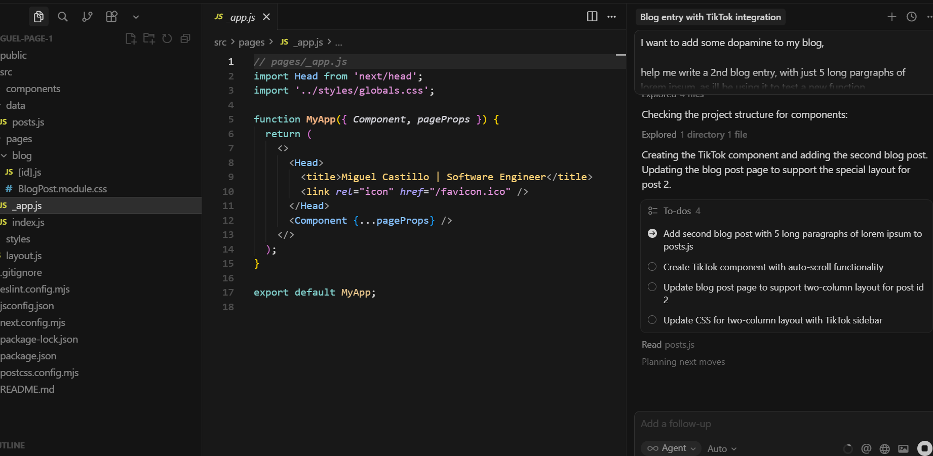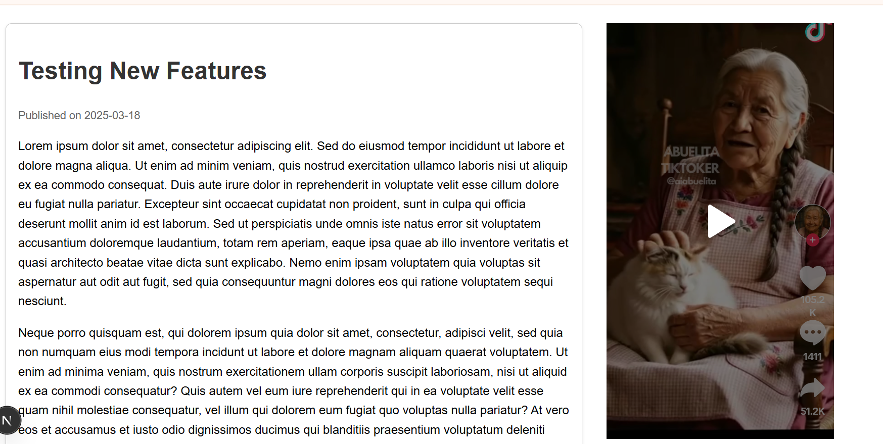 Inspired by Chad Ide (https://www.cladlabs.ai/), "The first brainrot code editor", I realized my blog was pretty… boring. So yeah, it clearly needed some extra dopamine. And obviously, the king of short-form dopamine is TikTok, so I decided to integrate TikToks into my blog.